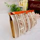当店の作品は、美しく可愛いデザインのインド刺繍やチロリアンテープ、または丁寧に作られているレースのリボンなどと、美しい艶感のあるリボンを一枚一枚厳選し、それらをアレンジして組み合わせる事で一枚の布にしています。そして、その一枚布を作品として形作っています。必ずどこかにキラキラの輝きを取り入れている、完全オリジナル作品です。