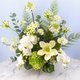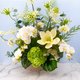 作品特色:選用進口高階擬真花材,較不易沾染灰塵,以特級擬真花材手工製作而成的植栽花飾,附加擴香試管,環境美化同時帶有芬芳的香氣。