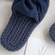 - Womens crochet slippers Home knitted slippers are made of cotton cord and complemented with a pompon. Created for women who want to emphasize their individuality, beauty and style. A wonderful balance of fashion and comfort. Relaxed elegance for your feet! Slippers can be a nice and pleasant gift for mother's day, birthday, anniversary.