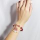 嚴選濃豔、清透草莓晶,巧雕2只招財神獸貔貅(好事成雙),精工編製古典流蘇飾,含6只藍暈月光石貔貅(表六六大順、六畜興望),共8只貔貅象徵運勢大發。