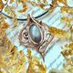 將黑太陽石以紅銅線編織成金色的葉片,陽光下彩虹光澤閃動,傳遞著秋日的溫暖和浪漫,為蕭瑟的秋天帶來一絲暖意。