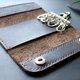100% handmade convenient key holder for 6 keys made from premium quality leather. Has 1 slot for cards, 6 carabiners for keys and hook to attach the case somewhere.