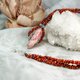 雞血石由「地」和「血」兩部分所組成:「血」的礦物成分主要就是朱砂,「地」的部分則由於產地的不同,包含有石英、高嶺石、方解石、以及一些矽酸鹽礦物等。