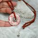 - 天然雞血石平安扣 紅石榴石 琉璃珠 雙面皆可戴 銀飾長墜鍊