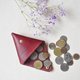 約可放置30枚零錢,將革邊縫上麻線,使零錢包更加有質感