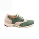 *綠色反毛皮牛皮拼接米色設計,穿出有型及個人特色