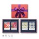 以象徵富貴喜氣的珊瑚紅,綴上尊貴典雅的紫色緞帶,寄託心中雙喜盈門、好事成雙的美好希冀,呈獻傳統東方富貴喜氣。善用空間設計,收納更多心意。單層與雙層的搭配組合,送禮與典藏的最佳選擇。