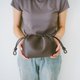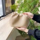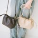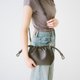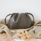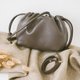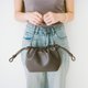 由柔韌霧感真皮製成,束口收合時形成自然皺摺,手感輕柔,形狀可愛不做作。