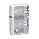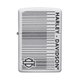 此款採用經典白色啞漆機身並透過色彩成像技術,將經典的哈雷戴維森品牌LOGO及名稱以簡約排版呈現在正面處,再透過許多不規則的橫線線條去搭配,是一款低調且好看的防風打火機