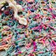 以三角為基底,可幻化出任何形狀,乳白羊絨毛為連結,兩絞手染線可以各自綻放也可以併著和諧~
