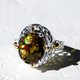 光を受け七色に輝くこの石を、18金のボールと透かし模様で飾りました。