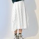 條紋緹花收襬細褶裙 - 裙子/長裙 - 棉.麻 白色