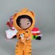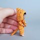 - Miniature crocheted doll with micro crocheted tiger. Doll is about 7 cm (2,4 in), tiger is about 2 cm (0.8 in). Movable head, arms and legs. Set includes two clothes: sleeping tiger suit and red dress with a cap.