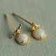 這對迷人的蛋白石耳環,採用乳白色蛋白石,光線照射下展現美麗光澤。蛋白石鑲嵌於華麗的維多利亞復古風格底座中。耳釘直徑約 10 毫米,材質為鍍金純銀(法國銀)。