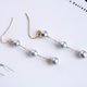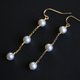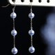 気品あふれる青みがかったナチュラルグレーのあこやパールを、縦に3粒連ねたチェーンピアス。