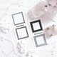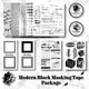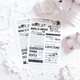 The Modern Black package contains four sheets per design. The background lettering paper measures 105 x 148mm, the frame paper measures 70 x 140mm, the lettering PET stickers, and the point lettering stickers measure 105 x 148mm, for a total of 40 sheets.