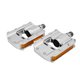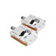 - CarryMe 摺疊腳踏採用一體式鋁合金 CNC 加工,搭配摺疊機構設計,收納更省空間。銀色拋光質感與復古車款相得益彰,展現金屬復古風格。