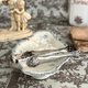 典雅的法國鍍銀糖夾,尾端有特殊的獅掌造型夾具,與新藝術時期的雕紋、迷人的亮銀光澤。