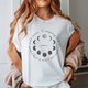 這段美麗的經文: 凡事都有定期, 天下万务都有定时。傳道書3:1。搭配著迷人的月相插畫,象徵著時間的流逝和宇宙的和諧,為您的穿搭添一絲優雅和智慧。