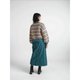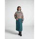 デザイナーがネパールにいた時に、糸の色のサンプルで編み子さんがサクッとストライプを作ってくれたのが始まり。四色の色糸を染めてもらってkapuwa初の全体ボーダーの柄が誕生しました。
