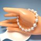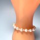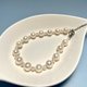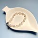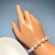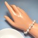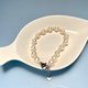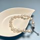 7-8mm近圓的天然淡水珍珠呈現出美好的月光白色,3~4mm的baby珠與其相間排列,紗織小姐用半心形搭扣連接,長度約17cm,在腕間垂下約4.5 cm的延長鏈,佩戴舒適,精緻感立現。