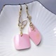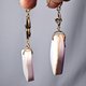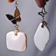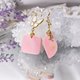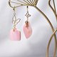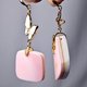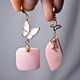嚴選產量**珍稀**的**靈性**有機寶石-**女皇貝**(粉硨磲),磨製**無飾牌(平安無事)**,寶石粉色濃郁、**瓷化**程度高,點綴蝴蝶(**福氣**)、葉形墜頭(**一葉成功、一葉致富**),整體**不對稱設計**韻律美麗,富貴華麗,古典風情與現代時尚兼備。