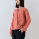 柔光裝飾斜褶雙扣上衣 - 女上衣/長袖上衣 - 棉.麻 紅色