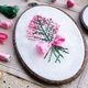 麻地の布に刺すだけで簡単に可憐な花刺繍を刺して頂けます。