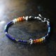 カーネリアンとスクエアターコイズ、ハーキマーダイヤモンド、小さなラピス、カレンシルバーの華奢なブレス