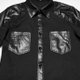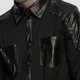 - 黑暗的龐克個性襯衫。採用微彈斜紋梭織料,仿皮斜紋壓膠料製作。肩部肩甲廓形分割拼接設計,沿邊黑色金屬孔洞裝飾。簡潔俐落 ,別具一格合體版型。