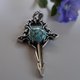 1. 當綠松石內所含的鐵離子越多,則顏色越綠,反之,若無鐵離子,則呈富麗的天藍色,本件老綠松石有是屬天藍色(市場較偏喜愛)