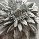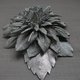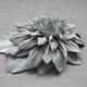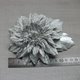 A white flower with frosty silver patterns on the petals and silver leaves. Made of genuine leather, it's weather-resistant.