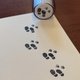 This stamp creates a gentle trail: a pair of human footprints accompanied by tiny dog pawprints, marching together across paper like a quiet narrative.