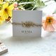 絲綢般的銀白色調手工編織圖案鍊身,搭配畫龍點睛的白水晶與金色串珠主題,ANGELA手環細緻卻充滿存在感,可調式的拉繩設計可輕鬆調整大小不受手圍限制。