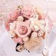 花材 :進口大玫瑰永生花(粉)、進口小玫瑰永生花(粉)、大索拉永生花、小索拉永生花、金仗球、金色富貴竹葉、三色繡球、白色文竹。