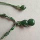 純正的菠菜綠和田碧玉葫蘆雕刻件製作的項鏈,油糯糯的料子,綠意蔥蘢,有些許黑點,長32.8mm,寬13.18mm,厚10.66mm。造型古樸。手感冰潤油滑,搭配手工編繩製作。