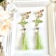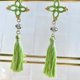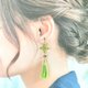 リラックスグリーンの糸でタティングレースの耳飾りを作りました。