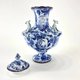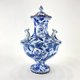 美麗的帶把手和蓋子的彩陶花瓶將吸引經典形狀、藍色色調和精緻裝飾的粉絲。