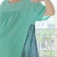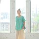 ふわりと風をまとったかのように、ゆったりとしたトップスです。二の腕をしっかり隠し、丈もお尻の辺りまであり、隠したい部分をしっかり隠しつつも、美しい形です。