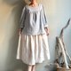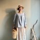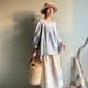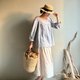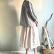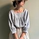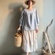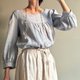 威尼斯/灰藍色酵素洗亞麻方領花苞袖/七分袖上衣100%Linen