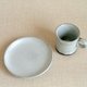 この作品は、信楽の土を使いろくろで作ったカップとソーサーに、独自に調合した釉を味わい深くかけています。優しい口当たりで飲みやすいカップです。それぞれ単品でもお使いいただけます。