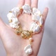 **1.圖上巴洛克珍珠長約19-24mm、寬約6-18mm,黃K金蝴蝶結釦長約30mm,手圍15.5-16.5cm合適。**