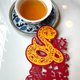 設計上運用元寶、銅錢、錢幣、杏花(幸福)、芭蕉扇(互助)的意象,作為蛇圖紋轉化,雕刻於進口紙卡上,可以當開運小物、相框圖、裝飾手機殼用、書籤,願您蛇足飽滿,財庫滿滿。