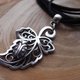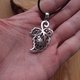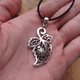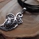 Ladybug on the leaf silver-plated pendant necklace on seude lace.