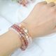隔珠採切割面月光石、金太陽石、夢幻紫水晶、貝殼珠、18K包金隔珠點綴。可繞4圈在手上,採用日本彈性線製作。