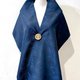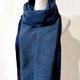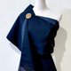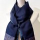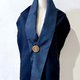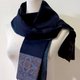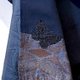 這塊藍黑色布料的材質帶著絲質的混織,非常美妙。平常看時近乎黑色,只有在轉折近看才會發現裡面蘊含藍與棕色的十字星;背面則選擇柔軟滑順的黑色絲棉襯著主題:私心藏密意。
