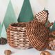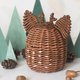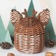 This cute baby deer will be a nice gift for a baby shower. A wicker lidded basket is a funny gift idea for a deer or animal lover. This small wicker box can be used as a jewelry storage, candy box, or other small stuff storage basket. Also, this brown deer decor will add a happy mood to your scandi nursery or kid's room.