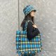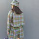 オリジナルの先染めチェック生地を使用したバケットハット。