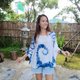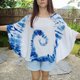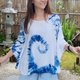 White Blue Tie Dye Butterfly Sleeves Top - 女上衣/長袖上衣 - 棉.麻 藍色