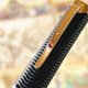 讓人們想起吳爾芙的寫作才華,將人物的意識、情感、思想流動的節奏伴隨著太陽和浪潮的升起沉落之節奏而起伏生滅,從而構成一種難以言喻的完美呼應。筆夾上鑲嵌一顆亮眼的紅寶石,象徵吳爾芙創作的前衛風格。另外18K金的筆尖細雕著兩棵榆樹,這是在1941年吳爾芙最後一次被人看見在榆樹下休息。筆尖上的榆樹圖案相當細緻,展現精密工業的宏偉之處。